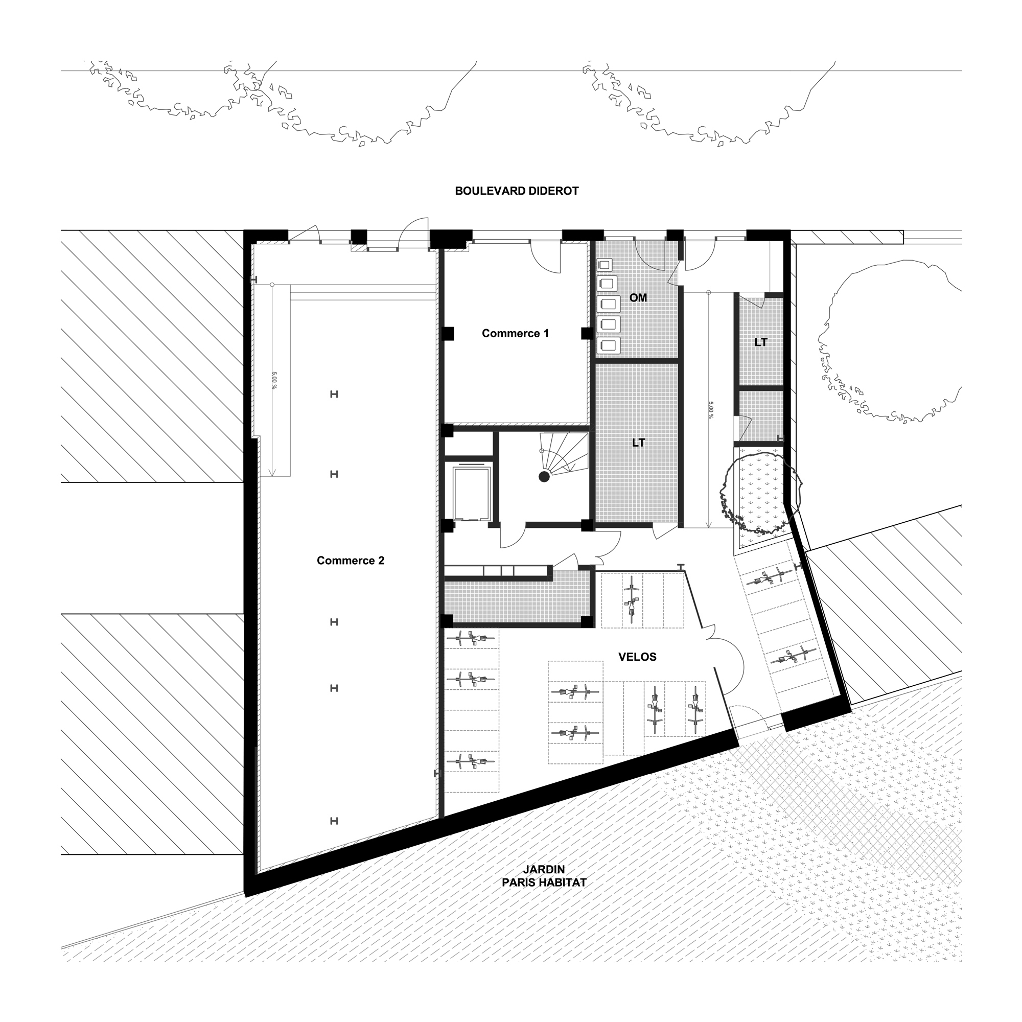 Lieu: Paris 12e - Date : 2023 - Mission : Concours - Equipe : parages. Albert&Co, Kairn, ACFI - Maîtrise d'ouvrage : Paris Habitat - Programme : Surélévation de 17 logements avec structure mixte en acier de réemploi, plancher bois et isolation paille - Budget : 3,9M€ ht - Crédits photos : Galerie Blanche